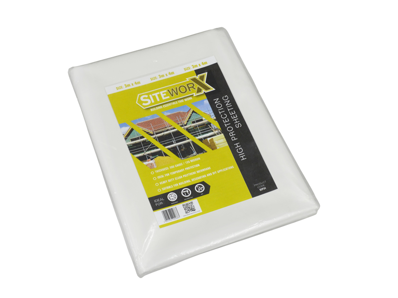 The Siteworx light duty protection sheeting is a lightweight clear polythene sheeting for use as a polythene dust sheet. Available as a 2m x 50m multi-folded roll.